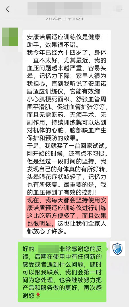安康諾盾預適應訓練儀可通過經常對人體進行反復的、短暫的、無創傷、無危害的缺血預適應訓練,激發人體免疫系統的應急機制,從而達到預防心腦血管等疾病的發生。